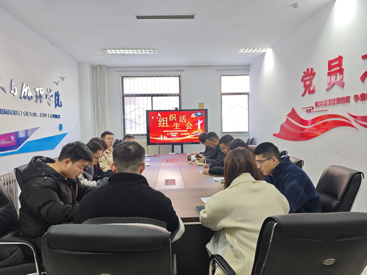 发展目标与博士生培养要求,对支部党员提出三点指导意见:一是筑牢思想根基,持续深化理论学习,要求党员以“学深悟透”为导向,将党的二十大报告与半导体领域前沿动态结合,在补足知识短板中提升政治判断力;二是坚持致知于行,推动学用贯通,勉励博士生立足国家“卡脖子”技术难题,将论文写在科研一线,以创新成果彰显使命担当;三是树立全局观念,提升政治站位,强调要跳出“小我”局限,主动服务学科交叉融合与产学研协同创新,在团队协作中实现个人价值与集体发展的有机统一。