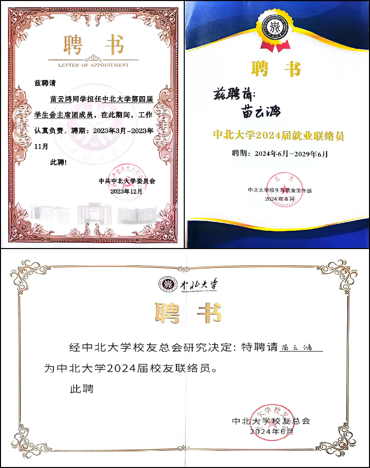 2023年“学习二十大永远跟党走”红色研学实践活动,重走学校旧址,探索革命圣地,在学思践悟中汲取奋进力量;还参加校园科技文化艺术节的筹备工作并在开幕式作为学生代表进行发言。本科期间获校级优秀团员、校级优秀团员标兵、校级优秀学生干部等荣誉。