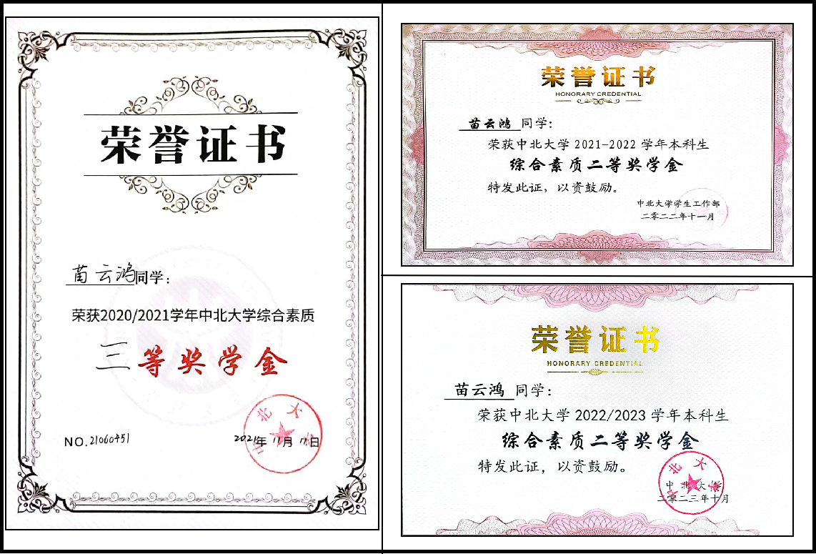在学习方面,本人始终高度重视专业课程的学习以及专业技能的培养,自大一入学开始,便以积极的态度、饱满的热情投入各类课程的学习,经过自己的不懈努力,本科期间无挂科记录并且传感器原理及设计、集成电路设计自动化、集成电路/MEMS设计综合实践、毕业设计等十余门主要课程分数均为90+,连续四年获得综合素质奖学金。