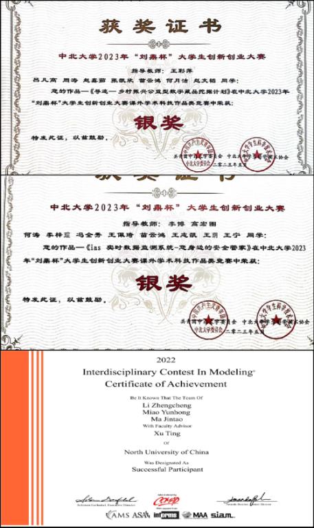 随着本科学习的不断深入,我也逐步意识到了自己实践经验的缺失以及比赛阅历的不足,便积极寻求各类比赛机会,在一次次比赛中磨砺自己、在一次次实践中完善自我,四年里累积参加互联网+、大学生创新创业训练项目、刘鼎杯、挑战杯、节能减排大赛、美国大学生数学建模竞赛等各类、各级别比赛,在项目规划、团队沟通、专业知识、答辩能力等多个方面得到了提升,并且收获了多项国家级、省部级、校级奖项。