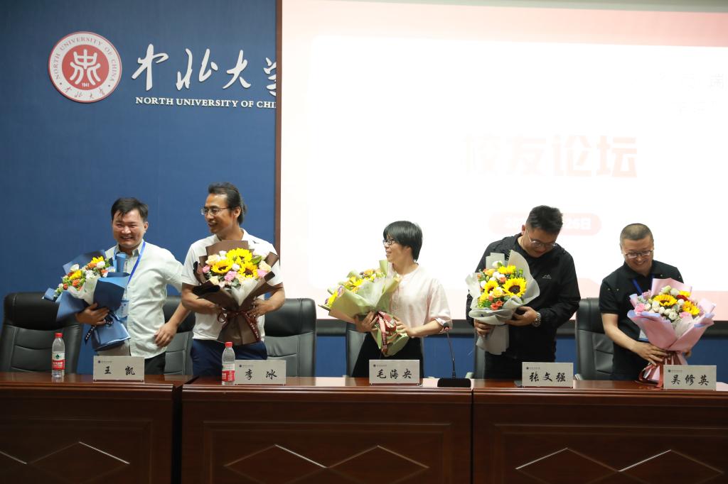 论坛上,学生代表向校友敬献鲜花送上最诚挚的祝福和最衷心的感谢,激烈的提问环节后校友论坛圆满落幕,参会同学都受益匪浅,开拓了眼界!