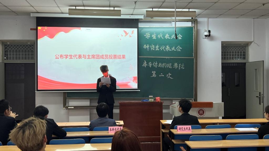 在11106H教室召开第二次学生代表大会、第二次研究生代表大会。各代表团、各预备人选和团委副书记王旭老师参加了会议,会议由张芷恒、赵君正主持。