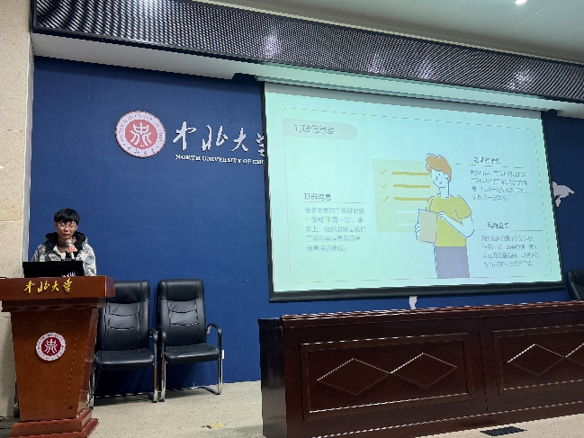 王璇同学作为应用物理学专业的学生代表,与同学们讨论了在本科阶段的生活和学习中经常遇见的困难,告诉大家如何合理利用网络资源,提升自身能力。