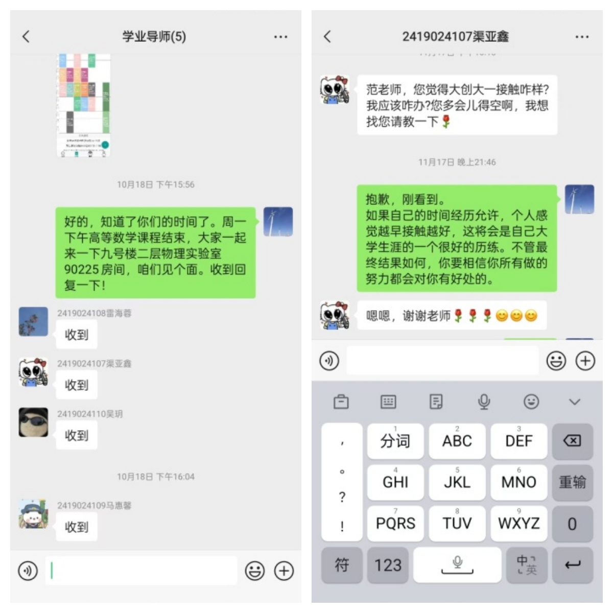 范老师勉励学生,既来之则安之,好好学习,不挂科,对于毕业要求绩点达到2.1才会有双证,也就是平均每门课的成绩都要在70分以上;如果自己的能力允许,尽可能的提高自己的成绩,争取评优评奖。