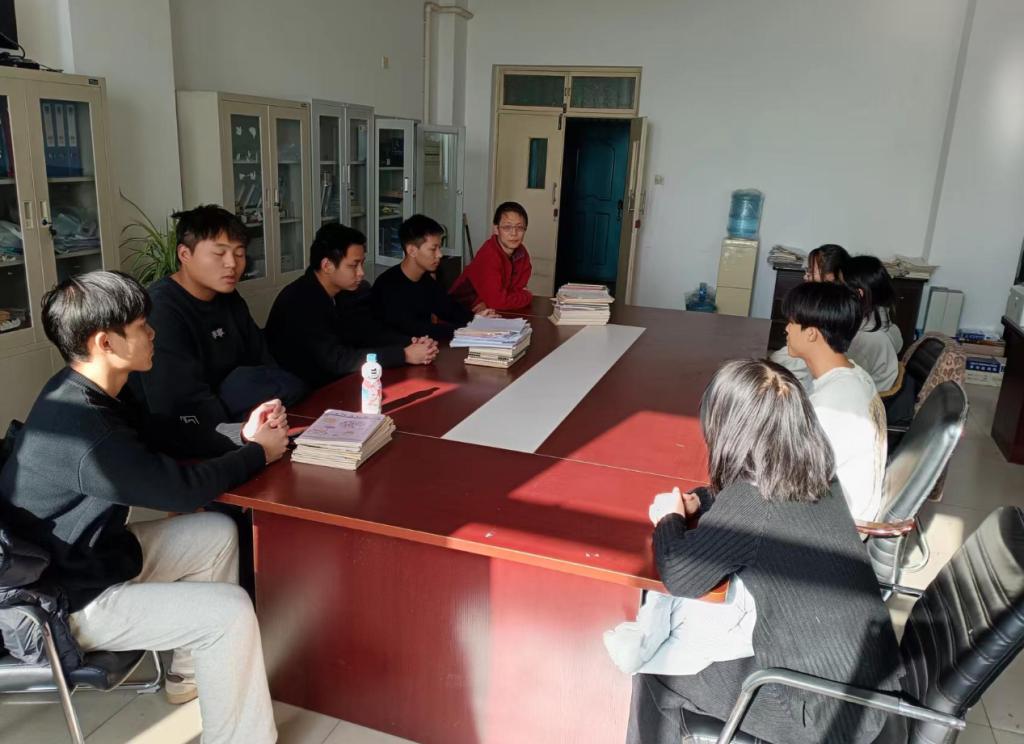 会上,导师和程阳、刘雨彤、孙一嘉、熊佳丽四位大二同学,以及李星磊、吴淑璟、高淼水、张艺耀、高进诚五位大一同学见面。导师了解了各位同学的基本情况,并请每位学生汇报自己近期的学习情况。大部分学生表示能够按时上课并完成作业,且有些学生会在课后进行复习与额外的练习。少数学生则反映,未能按时完成所有作业,甚至对某些章节的内容理解不深。