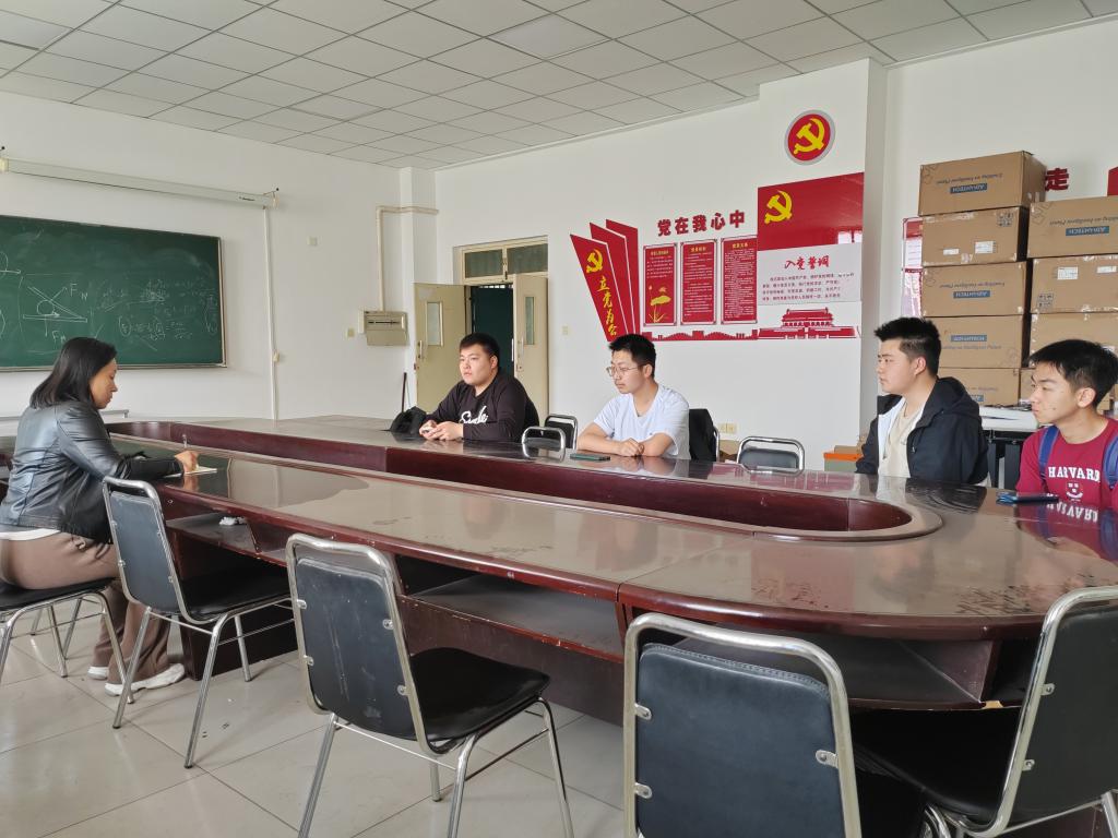 2025.4.28下午15:00,在教学九号楼09810会议室,段美玲老师邀请了2021级应用物理学宁邢富同学与2024级微电子专业的4名同学就大学生活的一些话题进行了交流。宁邢富同学是应用物理学专业即将毕业的大四学生,刚被首都体育Fun88乐天堂