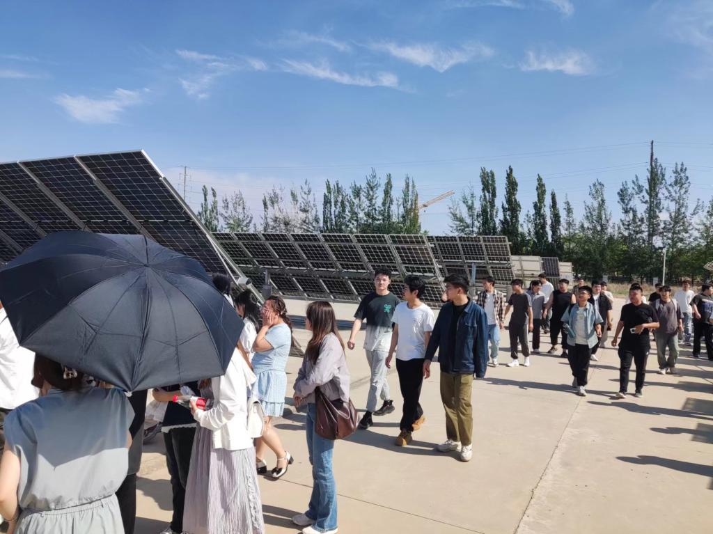 在晋能光伏,企业负责人首先带领同学们开展专题讲座,对TOPCon技术的工艺流程和太阳能电池板组件进行了详细介绍。随后,带领同学们来到了太阳能电池发电厂,现场参观学习。在智能制造车间,同学们沉浸式体验了TOPCon电池全自动化生产线。通过5G智能小车、机械臂协同作业的无人化产线,同学们直观了解到从硅片切割到电池片封装的全流程工艺。