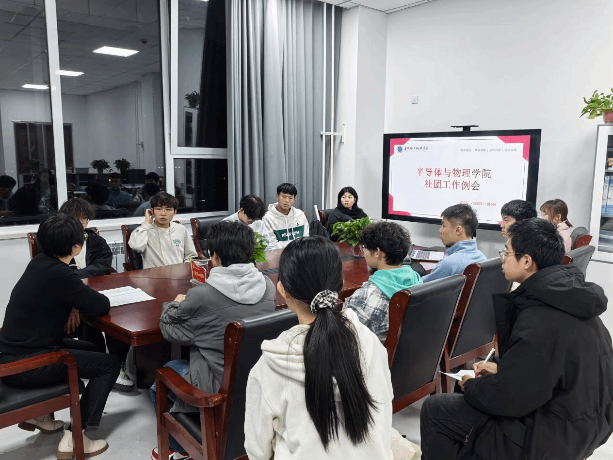 团委副书记王旭主持,阳光网球社、萌芽剧社、AIGC中北、物理协会四家社团负责人参会。